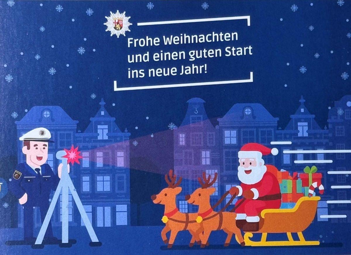 Die Polizeiinspektion Schifferstadt wünscht allen Mitbürgerinnen und Mitbürgern ein ruhiges, besinnliches und schönes Frohes Fest!