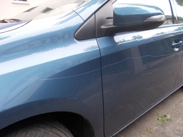 Unbekannte zerkratzten mit einem spitzen Gegenstand von Samstag (15.7.2017, 17.30 Uhr) auf Sonntag (16.7.2017, 10.30 Uhr) einen geparkten PKW. Der blaue Toyota war im Tatzeitraum in der Pommernstraße geparkt. Insgesamt entstand ein Sachschaden in Höhe von 1500 Euro.