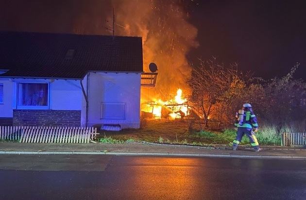 Der Schuppen hingegen brannte vollständig ab. Es kam zu keinen Verletzten.