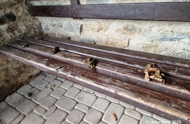 Unbekannte Täter beschmierten die Sitzbank sowie die Innenwände des Wartehäuschens mit Hundekot. Nach bisherigen Erkenntnissen wurde der Hundekot offenbar aus einem in der Nähe befindlichen Abfallbehälter entnommen. Der entstandene Schaden konnte bislang noch nicht genau beziffert werden.