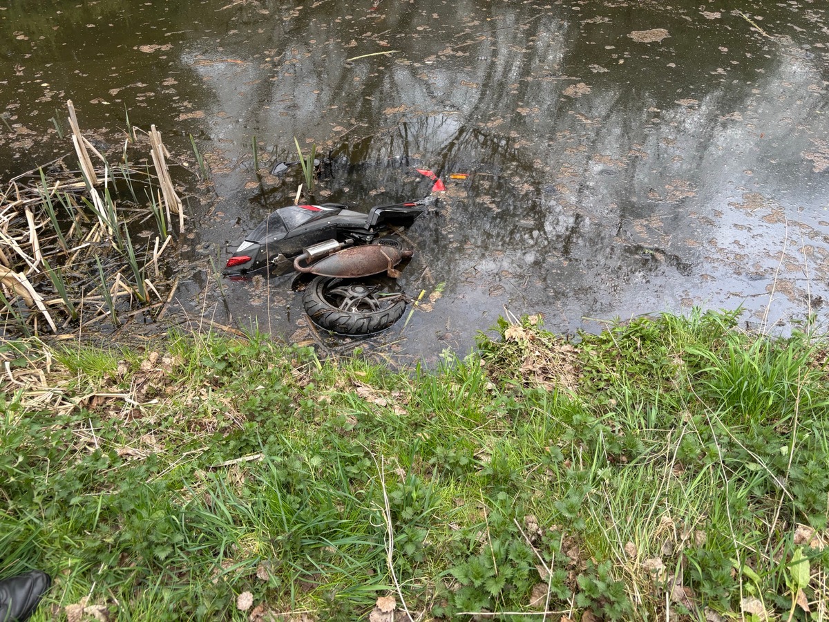 Am 18.04.2026 wurde der Polizeiinspektion Prüm durch einen aufmerksamen Bürger gemeldet, dass er in einer Teichanlage am Prümer Tettenbachweg einen alten Roller - im Wasser schwimmend - entdeckt habe.
