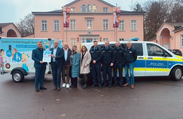 Am 04.12.2025 erfolgte im Schloss Birkenfeld, Sitz der Kreisverwaltung, im Beisein von Vertretern aller in das Projekt involvierten Firmen, Organisationen und Behörden die feierliche Übergabe des Mobils an die Verkehrssicherheitsberater der Polizei.