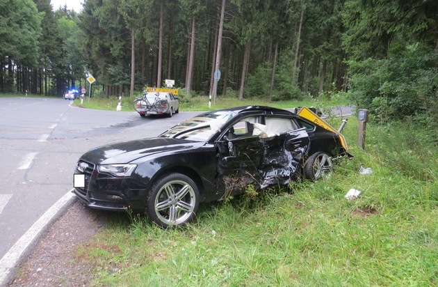 Am Dienstag, dem 28.07.2015, ereignete sich gegen 15.45 Uhr ein schwerer Verkehrsunfall im Kreuzungsbereich der L 17/L 20 am Forsthaus Brandscheid. Ersten Ermittlungen nach missachtete ein aus Richtung Brandscheid kommender Pkw Audi, besetzt mit einem Ehepaar aus Köln, die Vorfahrt eines aus Richtung Bleialf kommenden Pkw Mercedes, besetzt mit einem Paar aus Belgien. Bei dem Zusammenstoß der Fahrzeuge wurden alle Insassen schwer verletzt. Der entstandene Sachschaden wird auf ca. 30.000 Euro geschätzt. Da bei zwei der Verletzten zunächst Lebensgefahr bestand, wurde durch die Staatsanwaltschaft Trier zur Feststellung der Unfallursache die Erstellung eines Verkehrsunfallgutachtens angeordnet. Die Verletzten wurden durch das DRK und einen Rettungshubschrauber in Krankenhäuser der Region verbracht. Die Straße war im Bereich der Unfallstelle während der Maßnahmen voll gesperrt. Durch die Straßenmeisterei Prüm war eine Umleitung eingerichtet worden. Die Vollsperrung der Unfallstelle dauerte bis 18.55 Uhr an. Im Einsatz waren überdies die Feuerwehren aus Brandscheid und Bleialf.