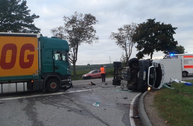 Ein 49-jähriger Fahrzeugführer befährt am Freitag Morgen gegen 08:05 Uhr mit seinem Transporter die B9 in Fahrtrichtung Worms und ordnet sich in Höhe der Anschlussstelle Gimbsheim links ein, um auf die L437 abzubiegen. Ein 41-jähriger Führer eines LKW befährt ebenfalls die B9 und will die oben genannte Anschlussstelle in Fahrtrichtung Mainz, also entgegengesetzter Richtung passieren. Der Unfallverursacher übersieht aus bisher ungeklärter Ursache den entgegenkommenden LKW und es kommt in der Folge zu einem frontalen Zusammenprall der beiden Fahrzeuge. Der unfallbeteiligte Transporter kippt durch den Aufprall zur Seite um und an diesem entsteht Totalschaden. Auch der LKW ist nicht mehr fahrbereit. In Folge der anschließenden Bergungs-, Abschlepp- und Reinigungsarbeiten wird die B9 in Fahrtrichtung Mainz für ca. 3 Stunden gesperrt. Die beiden Fahrzeugführer werden bei dem Verkehrsunfall glücklicherweise nur leicht verletzt. Der Sachschaden wird durch die aufnehmenden Polizeibeamten auf ca. 10.000 EUR geschätzt.