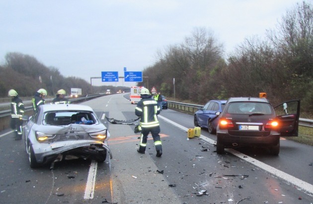 Von hinten näherte sich ein 19-jähriger Offenheimer, der die Situation rechtzeitig erkannte und abbremste. Ein ihm folgender Hyundai konnte noch nach rechts auf den Standstreifen ausweichen. Für den 30-jährige Fahrer eines Audis aus Alzey reichte es dann jedoch nicht mehr. Er prallte erst auf den bremsenden Mercedes des Offenheimers und wurde dann gegen einen auf der Überholspur fahrenden weiteren Mercedes eines 45-jährigen Bischheimers geschleudert. Der Mann aus dem Donnersbergkreis wurde dabei schwer verletzt.
