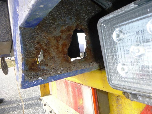 Gestern kontrollierten Polizeibeamte des Schwerverkehrstrupps der Verkehrsdirektion Mainz auf der BAB61 einen bulgarischen Lastzug. Der erste Eindruck war, dass der 19 Jahre alte Lkw und der 28 Jahre alte Anhänger in einen sehr schlechten technischen Zustand waren. An vielen Stellen war der Hauptrahmen durchgerostet und in sich verbogen. Ein technischer Gutachter stellte mehr als 100, zum Großteil gravierende, technische Mängel an dem Gespann fest. Diese waren überwiegend an den Baugruppen Bremsanlage, Rahmen, Fahrgestell und Aufbau. Dies ist besonders erschreckend, da das Gespann bis an das Maximum ausgeladen war. Nach viereinhalb Stunden gründlicher Verkehrskontrolle stand das Ergebnis fest. Beide Fahrzeuge sind Verkehrsunsicher. Laut des technischen Gutachters ist eine Reparatur unwirtschaftlich. Es wurde eine Verschrottung vor Ort angeregt. Dem Gespann wurde die Weiterfahrt untersagt und es wurde zur Sicherheit angekettet. Den Fahrer, aber auch den Halter, erwartet jeweils ein Bußgeld von mehreren hundert Euro.