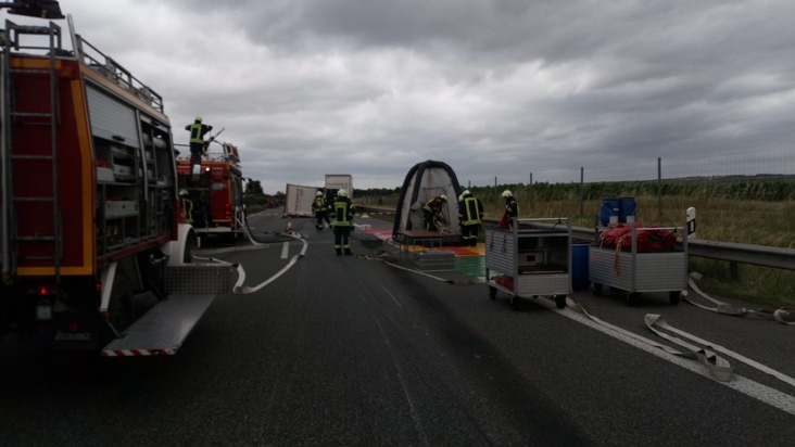 POL-VDMZ: LKW-Anhänger auf der A63 Höhe Wörrstadt in Fahrtrichtung Mainz umgekippt. Autobahn gesperrt