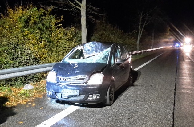 Bei einem Zusammenstoß mit einem PKW wurde am 1.11.2017 gegen 02:15 Uhr auf der B9 in Höhe der Anschlussstelle Mettenheim ein 31-Jähriger Fußgänger aus Ludwigshafen tödlich verletzt. Der 31-Jährige war aus bisher unerklärlichen Gründen zu Fuß auf der rechten der beiden Fahrspuren in Fahrtrichtung Worms unterwegs als sich von hinten ein PKW näherte. Der 19-Jährige Fahrzeugführer aus Worms nahm wahrscheinlich den 31-Jährigen zu spät wahr und erfasste ihn. Der Fußgänger erlitt tödliche Verletzungen und verstarb an der Unfallstelle. Die vier Fahrzeuginsassen des PKW, im Alter zwischen 16 und 18 Jahren, erlitten einen Schock und der Beifahrer zusätzlich Schnittverletzungen. Alle Verletzten werden in einem Krankenhaus betreut. Die Vollsperrung der B9 dauerte vier Stunden an. Ein Gutachter war vor Ort.
