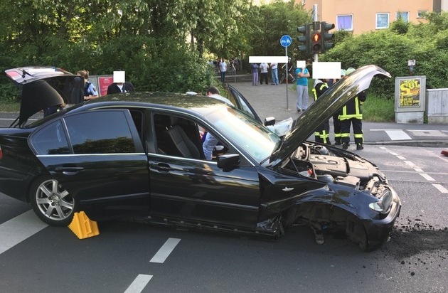 Am Donnerstag, 17.05 gegen 19.00 Uhr befuhr eine 20-jährige Mainzerin mit ihrem Pkw die Kreuzstraße in Richtung Hauptstraße. Bei der Fahrt löste sich aus bisher ungeklärtem Grund ein Teil der Vorderachse, so dass sie die Kontrolle über ihren Pkw verlor. Die 20-jährige stieß mit ihrem Pkw gegen 3 geparkte Fahrzeuge und beschädigte diese. Durch den Unfall löste der Airbag ihres Pkws aus und klemmte sie ein. Durch die Berufsfeuerwehr Mainz konnte sie aus ihrem Pkw befreit werden. Die 20-jährige verletzte sich bei dem Unfall schwer (u.a. Verdacht auf Schlüsselbeinbruch) und wurde durch den Rettungsdienst und einen Notarzt vor Ort versorgt und anschließend in die Universitätsmedizin eingeliefert. Die Kreuzstraße musste für die Zeit der Bergungsarbeiten für eine Stunde vollgesperrt werden. Die Schadenshöhe liegt bei ca. 20.000 EUR.