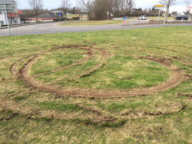 Wie erst jetzt bekannt wurde, kam es in der Nacht von Freitag, dem 03.03.2017 auf Samstag, dem 04.03.2017, zu einer Sachbeschädigung an zwei Grünflächen in der Ortslage Horhausen, im Bereich B256/ Neue Schulstraße. Dort war ein Pkw auf die jeweiligen Grünflächen aufgefahren und gab Vollgas, wodurch die Reifen durchdrehten und dabei Kreise gezogen wurden. Eine Strafanzeige wegen Sachbeschädigung wurde hier von der Polizei aufgenommen. Hinweise bitte an die Polizei Straßenhaus, 02634-9520 oder per Mail pistrassenhaus@polizei.rlp.de