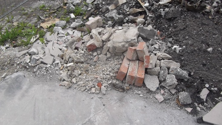 In der Zeit vom 06.06.18, 13:00 Uhr bis zum 14.06.18, 14:00 Uhr, wurde an einer Bandstelle in der Rudolf-Diesel-Straße unerlaubt Bauschutt abgelagert. Vor Ort befindet sich noch Brandschutt und offenbar hat jemand dort ca. 0,5 m3 Abbruch von Bimssteinen, Ziegelsteinen, zwei Stahlkonsolen einer Badewanne, einen Fliesen-Revisionsrahmen, Verputz-Streckeisen, weinrote Steingutfliesen im Format 15x15cm sowie schwarze Glasfliesen, die vermutlich als Sockel oder Bordüre verwendet waren, abgelagert. Vermutlich wurde ein Badezimmer erneuert und die "Altlasten" auf dem Grundstück abgeladen. Aufgrund des Fliesendesigns stammen diese vermutlich aus den 1970er oder 80er-Jahren. Wer Hinweise zur Herkunft des Bauschuttes geben kann meldete sich bitte bei der Polizeiwache Höhr-Grenzhausen.