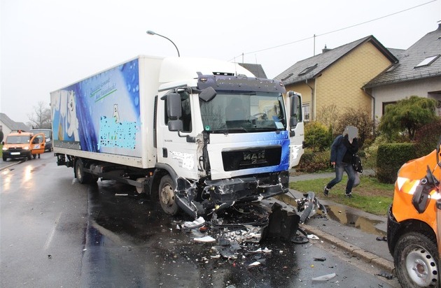 Am heutigen Donnerstag, kurz vor Mittag, ereignete sich im Lutzerather Ortsteil Driesch ein Verkehrsunfall mit mehreren Beteiligten. Ein Lieferwagen wollte nach links in einen Hof einfahren und wartete, um den Gegenverkehr passieren zu lassen. Hinter ihm fuhr ein Pkw-Fahrer, der im Rückspiegel einen Lkw herannahen sah. Der Pkw wich nach rechts auf den Gehweg aus. Der Lkw wich nach links aus, um nicht mit dem vor ihm wartenden Lieferwagen zu kollidieren. Hierbei kam es zu einem Zusammenstoß des Lkw mit einem entgegenkommenden Fahrzeug. Letztendlich stieß der Lkw noch gegen ein links abgestelltes Fahrzeug der Straßenmeisterei. An drei Fahrzeugen entstanden teilweise schwere Schäden; zwei Personen wurden verletzt.
