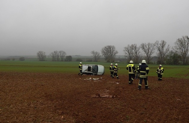 Gegen 14:30 Uhr kam am heutigen Tage eine 18-jährige Frau aus der VGV Maifeld mit ihrem Pkw in einer leicht abschüssigen Kurve bei Mertloch ins Schleudern. Auch aufgrund der herbstlichen Witterung kam sie nach rechts von der Fahrbahn ab, schleuderte nach links über die Fahrbahn und überschlug sich im angrenzenden Feld. Durch Rettungskräfte und Ersthelfer konnte die Frau aus dem total beschädigten Fahrzeug gerettet und anschließend in ein Koblenzer Krankenhaus verbracht werden. Es entstand ein Sachschaden von ca. 3.000 EUR In den Einsatz waren ca. 25 Feuerwehrleute der Feuerwehren Polch und Mertloch eingebunden. Die Fahrbahn der K 33 war bis 16:00 Uhr für den Verkehr voll gesperrt.