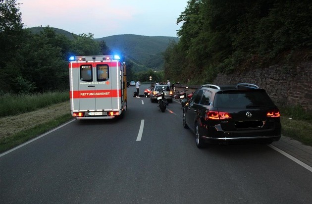 Am 31.05.2018, gegen 21.20 Uhr, befuhr ein 17-jähriger Kradfahrer aus Bonn die Kreisstraße 35 aus Richtung Esch kommend abwärts in Richtung Dernau. In einer Linkskurve verlor er die Kontrolle über das Leichtkraftrad und kam nach rechts von der Fahrbahn ab. Hier prallten Fahrer und Fahrzeug gegen eine Felswand, wurden von dieser abgewiesen und zurück auf die Fahrbahn geschleudert. Der 17-jährige Bonner zog sich hierbei schwerste Kopfverletzungen zu. Nach der notärztlichen Erstversorgung am Unfallort wurde er zur weiteren Behandlung in ein Koblenzer Krankenhaus verbracht. Am Leichtkraftrad entstand Totalschaden.