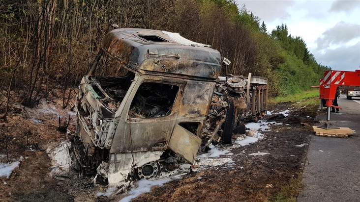 POL-VDKO: Gefahrgutunfall auf der A 61 - Ethanol-Laster abgebrannt