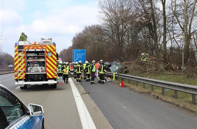 Am Samstag, 24.03.2018 gegen 11:41 Uhr befuhr der 20jährige Fahrer mit dem Pkw, VW-Sharan (rumänische Zulassung)zunächst den mittleren der drei Fahrstreifen auf der Bundesautobahn 3 aus Richtung Frankfurt kommend in Fahrtrichtung Köln. Er wechselte vom mittleren auf den rechten Fahrstreifen und fuhr geradlinig in Richtung Grünstreifen. In Höhe KM 79,025 kam der Fahrer schließlich nach rechts von der Fahrbahn ab, überfuhr ein Verkehrsschild und fuhr weiter ungebremst in eine Baumgruppe.