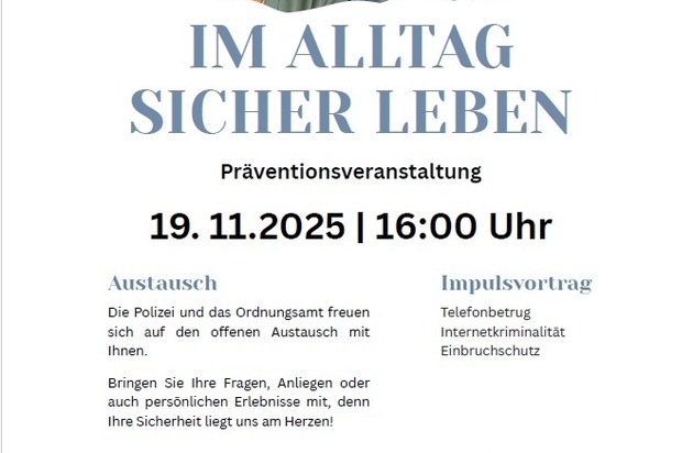 POL-PPKO: Präventionsveranstaltung "Im Alltag sicher leben"