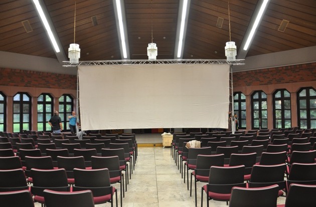 "Schwarzer Kies" heißt der 1961 erschienene Krimi, der in einer neu digitalisierten Fassung gezeigt wurde. Eigentlich sollte der auf einer Großleinwand "Open Air" im Polizeicampus gezeigt werden. Aber das Wetter spielte nicht mit und so wurde das Tagungszentrum kurzerhand zum Kinosaal umgebaut, samt Leinwand und Kinoprojektor.