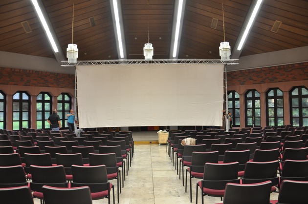 "Schwarzer Kies" heißt der 1961 erschienene Krimi, der in einer neu digitalisierten Fassung gezeigt wurde. Eigentlich sollte der auf einer Großleinwand "Open Air" im Polizeicampus gezeigt werden. Aber das Wetter spielte nicht mit und so wurde das Tagungszentrum kurzerhand zum Kinosaal umgebaut, samt Leinwand und Kinoprojektor.