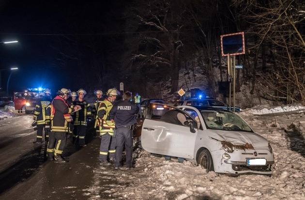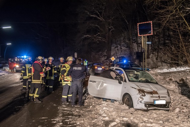 Zu einem Verkehrsunfall, bei dem sich ein PKW überschlug, kam es gestern Abend kurz vor 20 Uhr auf der Landstraße von Meggen nach Halberbracht in Höhe eines Autohauses. Die Fahrerin eines Kleinwagens war vermutlich Aufgrund der Witterungsverhältnisse ins Schleudern geraten, zunächst auf die Gegenfahrbahn und dann rechts in das Ufer gefahren. Dabei hatte sie sich nach Augenzeugenberichten einmal komplett überschlagen, kann dann aber auf allen vier Reifen zum stehen. Die Fahrerin verletzte sich wie durch ein Wunder nur leicht und wurde ins Krankenhaus nach Lennestadt gebracht. Erste Meldungen, dass sie in ihrem Fahrzeug eingeklemmt sei, bestätigten sich glücklicherweise nicht, die alarmierte Feuerwehr sicherte lediglich die Unfallstelle. Im Einsatz waren neben dem Rettungsdienst die Löschgruppen Halberbracht, Meggen, Elspe, Grevenbrück und der Einsatzleitwagen des Löschzuges 1 mit 35 Einsatzkräften.