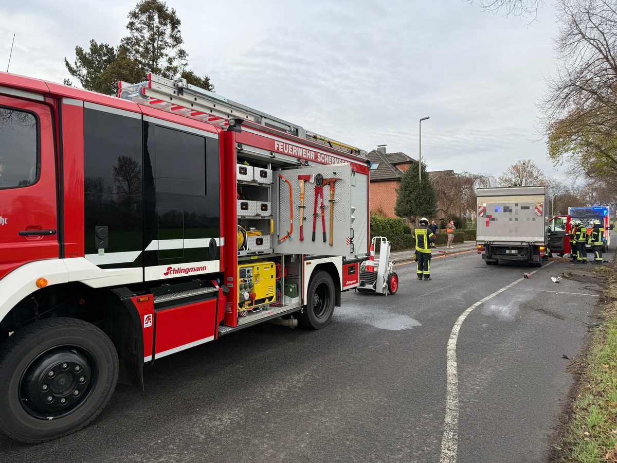 Am Dienstagnachmittag um 14:30 Uhr wurde der Löschzug Schermbeck mit dem Stichwort "CBRN 2 - Betriebsmittel laufen aus" an die Einsatzstelle Maassenstraße alarmiert. An der Einsatzstelle war es zu einem Verkehrsunfall mit einem Lieferwagen und einem geparkten PKW gekommen. Die Einsatzkräfte der Feuerwehr stellten den Brandschutz sicher, streuten die auslaufenden Betriebsmittel ab und schalten die Fahrzeuge spannungslos. Nach der Übergabe der Einsatzstelle an die Polizei endete der Einsatz für die Feuerwehr gegen 15:30 Uhr.