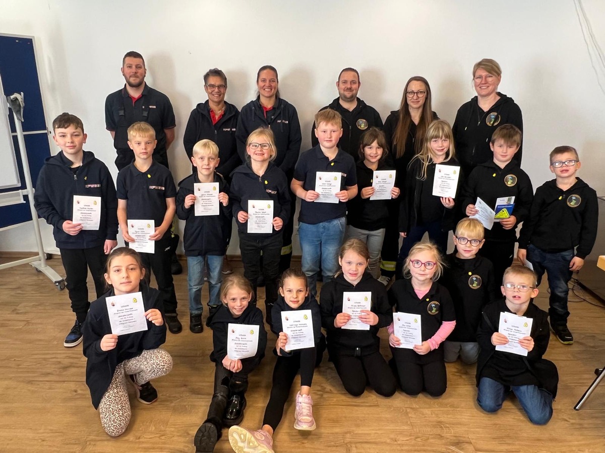 FFW Schiffdorf: Abnahme der Kinderflamme 1 in Spaden - 16 Kinder meistern erfolgreich die Prüfung