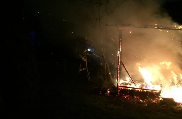 FW Menden: Gartenhütte niedergebrannt