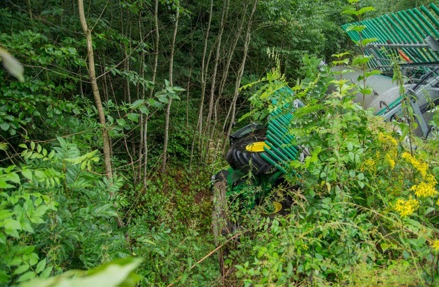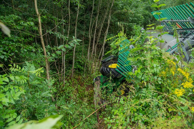 FW Menden: Traktor und Güllefass stürzen in Bach - Fahrer bleibt unverletzt