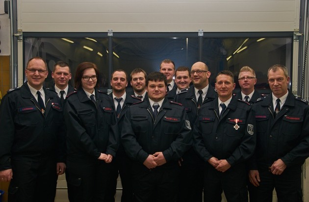 Im Rahmen der Jahresdienstbesprechung konnte Christian Bongard den Bösperder Martin Zminkowski zum Feuerwehrmann und den Schwittener Alexander Zentis zum Oberfeuerwehrmann befördern. Christopher Reimann und Frank Hufnagel wurden nach bestandenen Lehrgängen zu Unterbrandmeistern befördert, Dominik Kraus zum Brandmeister. Ihre Beförderungsurkunden zum Oberbrandmeister erhielten Thomas Pasternak, Manuel Trilling und Marco Schäfer. Dominik Kraus wurde zudem für 25 jährige aktive Einsatztätigkeit mit der Feuerwehr-Ehrennadel in Silber ausgezeichnet.