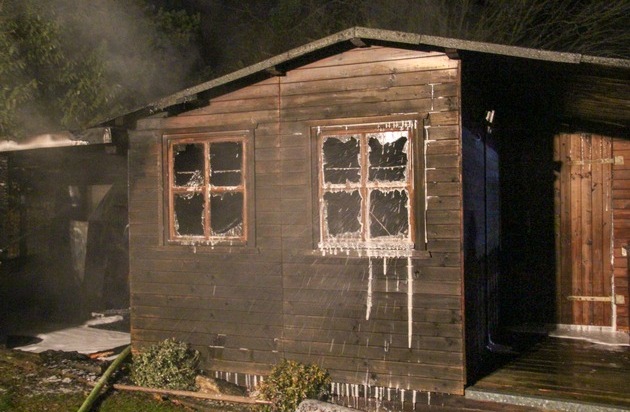 FW Menden: Gartenhaus im Vollbrand