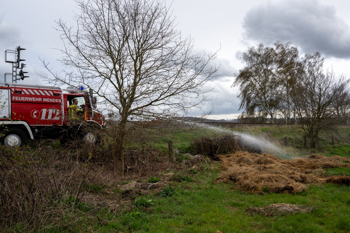 FW Menden: Feuerwehr Menden löscht Rundballenbrand auf Streuobstwiese