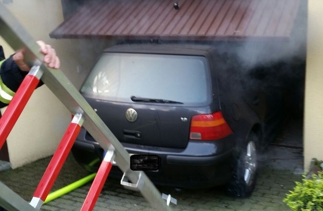 FW-RE: Brennender PKW in Garage eines Wohnhauses