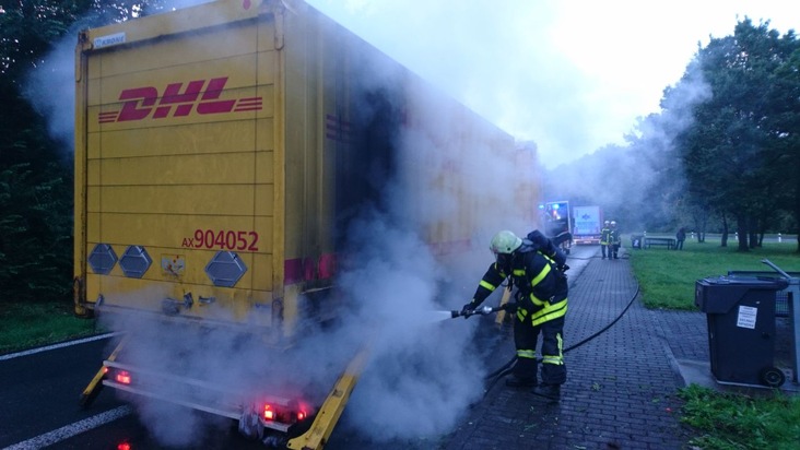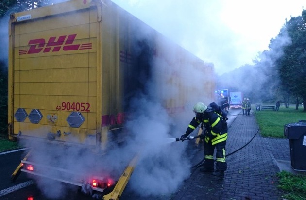 FW-RE: LKW-Anhänger fängt Feuer - zum Glück keine heiße Ladung