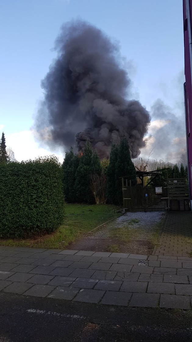 Die Feuerwehr Recklinghausen wurde um 13.35 Uhr zur Herner Straße alarmiert. Bereits bei der Ausfahrt aus der Feuer- und Rettungswache an der Kurt-Schumacher-Allee war eine größere Rauchsäule erkennbar. Der Einsatzleiter erhöhte sofort die Alarmstufe und ließ durch die Kreisleitstelle einen weiteren Löschzug alarmieren.
