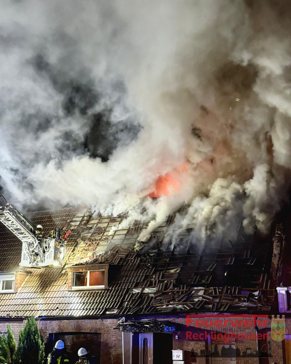 In der Nacht auf Dienstag (09. September 2025) kam es in Recklinghausen-Ost zu einem massiven Wohnungsbrand. Ein Hausbewohner musste hierbei mit schwersten Verletzungen durch Kräfte der Feuerwehr aus dem Brandhaus gerettet werden.