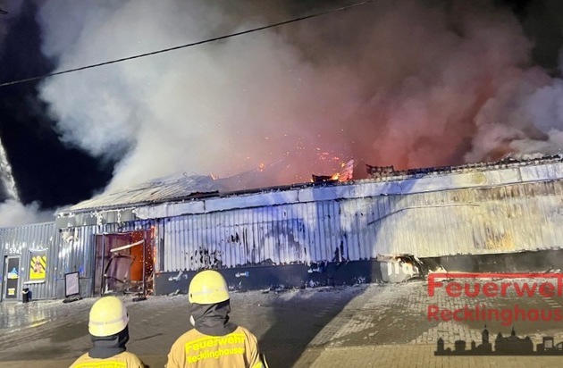 In der Nacht von Freitag auf Samstag (17. Januar 2026) kam es in Recklinghausen zum Brand einer Trampolinhalle. Die Halle brannte nieder. Ein Feuerwehrangehöriger wurde im Rahmen der Löscharbeiten leicht verletzt.