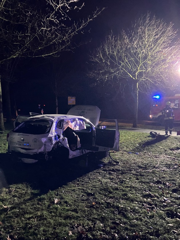 Der Rettungsdienst übernahm die Erstversorgung der beiden verletzten Personen. Parallel leuchtet die Feuerwehr die Einsatzstelle aus, stellte den Brandschutz sicher und führte eine technische Rettung am PKW durch.