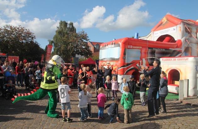 Vor diesem Hintergrund ist ein Besuch beim Stand des Landesfeuerwehrverbandes Schleswig-Holstein auf der NORLA in Rendsburg vom 7. - 10. September ein "MUSS". Am Eingang Nord präsentieren sich die Feuerwehren des Landes mit ei-nem bunten Programm - und zwar sowohl für aktive Feuerwehrleute und solche die es werden wollen, als auch für Besucher, die gezielte Infos suchen. Der Verband informiert über Heimrauchmelder, gibt Sicherheitstipps an einem "Gefahrenhaus" und hält für Kinder ein Glücksrad mit tollen Preisen bereit. Auch an einem Defibrillator können Interessierte trainieren und Hemmungen für einen eventuellen Realfall ablegen. An einem Reaktionsspiel kann Geschicklichkeit getestet werden und die Tagessieger gewinnen Familienkarten für den Hansa-Park oder Freikarten für die Polizei-Show 2017 oder "Jump and Race" in der Sparkassen-Arena. An einem "Feuertrainer" können echte Brände gelöscht werden. Aktive Feuerwehrleute können sich über die aktuellen Verbandsthemen, moderne Marketingmaßnahmen und die Facharbeit des Verbandes informieren. Optischer Höhepunkt am Stand der Feuerwehren ist sicher die riesige aufblasbare Eventanlage "Feuertaufe": Sieben Meter hoch, zwölf Meter tief und zehn Meter breit ist diese Feuerwehrerlebnisanlage, in der Kleine und Große zwei Hindernisparcoure überwinden müssen, um danach fünf Meter in die Tiefe rut-schen zu können (Foto in der Anlage).