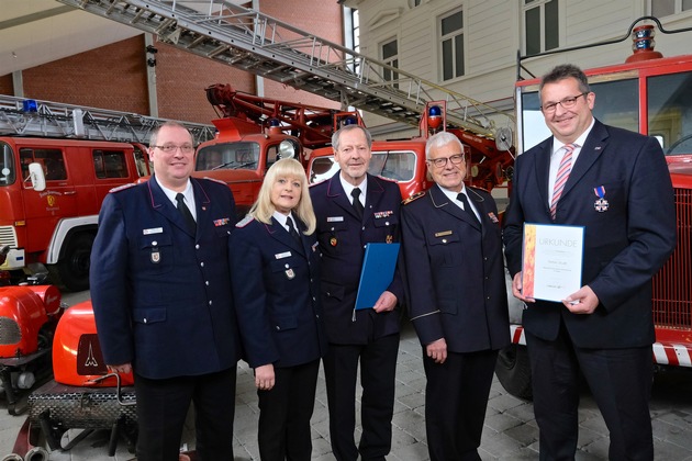Berlin/Fulda - Deutsches Feuerwehr-Ehrenkreuz in Gold, Silber oder Bronze, Deutsche Feuerwehr-Ehrenmedaille, Silberne Ehrennadel des Deutschen Feuerwehrverbandes und Medaille für Internationale Zusammenarbeit: Der Deutsche Feuerwehrverband (DFV) hat bei einer festlichen Ehrungsveranstaltung 35 Männer und fünf Frauen aus dem gesamten Bundesgebiet ausgezeichnet, die sich um das Feuerwehrwesen besonders verdient gemacht haben. Den würdigen Rahmen bot das Deutsche Feuerwehr-Museum in Fulda. Zwei der Geehrten kamen aus Schleswig-Holstein: