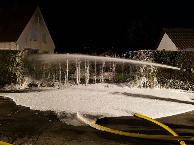 Donnerstag, 05. Januar 2017, 20:22 Uhr, Friedrich-Wilhelm-Weber Straße. Aus ungeklärter Ursache geriet eine Hecke in der Friedrich - Wilhelm - Weber Straße in Brand. Die Leitstelle der Feuerwehr alarmierte daraufhin den Löschzug Lügde mit dem Einsatzstichwort Feuer 2. Die Einsatzkräfte bauten eine Wasserversorgung vom Löschfahrzeug auf und löschten die auf ca. 12m brennende Hecke mit zwei C - Rohren ab. Anschließend wurde der Bereich eingeschäumt um ein erneutes aufflammen zu verhindern. Zum Abschluss des Einsatzes wurde noch die Straße mit Salz gestreut, aufgrund der eisigen Temperaturen hatte das Löschwasser die Straße in eine Eisfläche verwandelt.