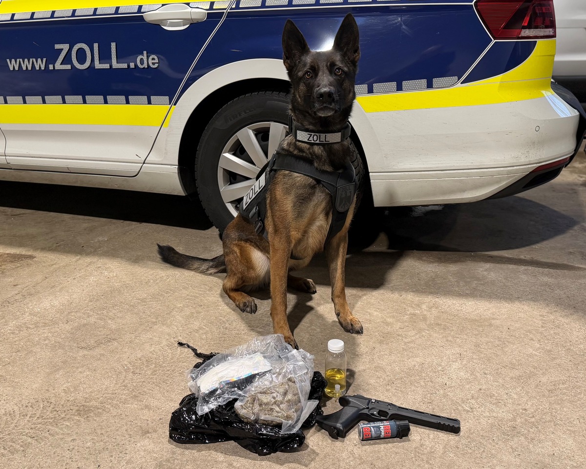 Um auszuschließen, dass sich in den Gepäckstücken noch weitere Betäubungsmittel befanden, wurde der Kleintransporter an der Dienststelle vollständig entladen und die Ladung eingehend kontrolliert. Im Zuge dessen entdeckten die Zöllnerinnen und Zöllner im Zugriffsbereich des Fahrersitzes eine CO2 Schusswaffe und verbotenes Pfefferspray.
