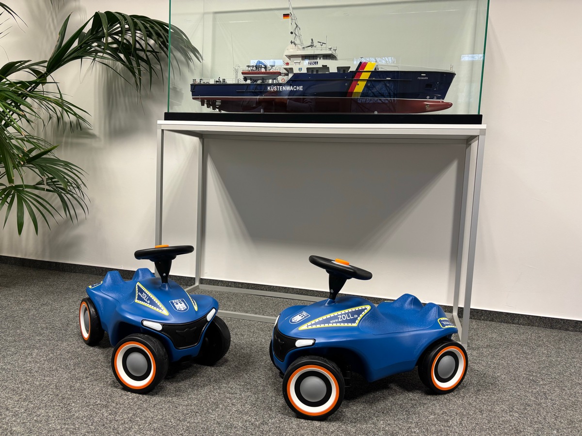 In diesem Jahr wurde der Blick bewusst erweitert. Erstmals standen freie Kindertagesstätten in Kiel und Lübeck im Fokus - Einrichtungen, die ohne einen finanzstarken Träger auskommen müssen und daher in besonderem Maße auf Unterstützung angewiesen sind. Im Rahmen der Spendenveranstaltung stellte das Hauptzollamt Kiel die diesjährige Idee vor: kindgerechte Rutschfahrzeuge im eigens entwickelten Einsatzfahrzeug-Design des Zolls.