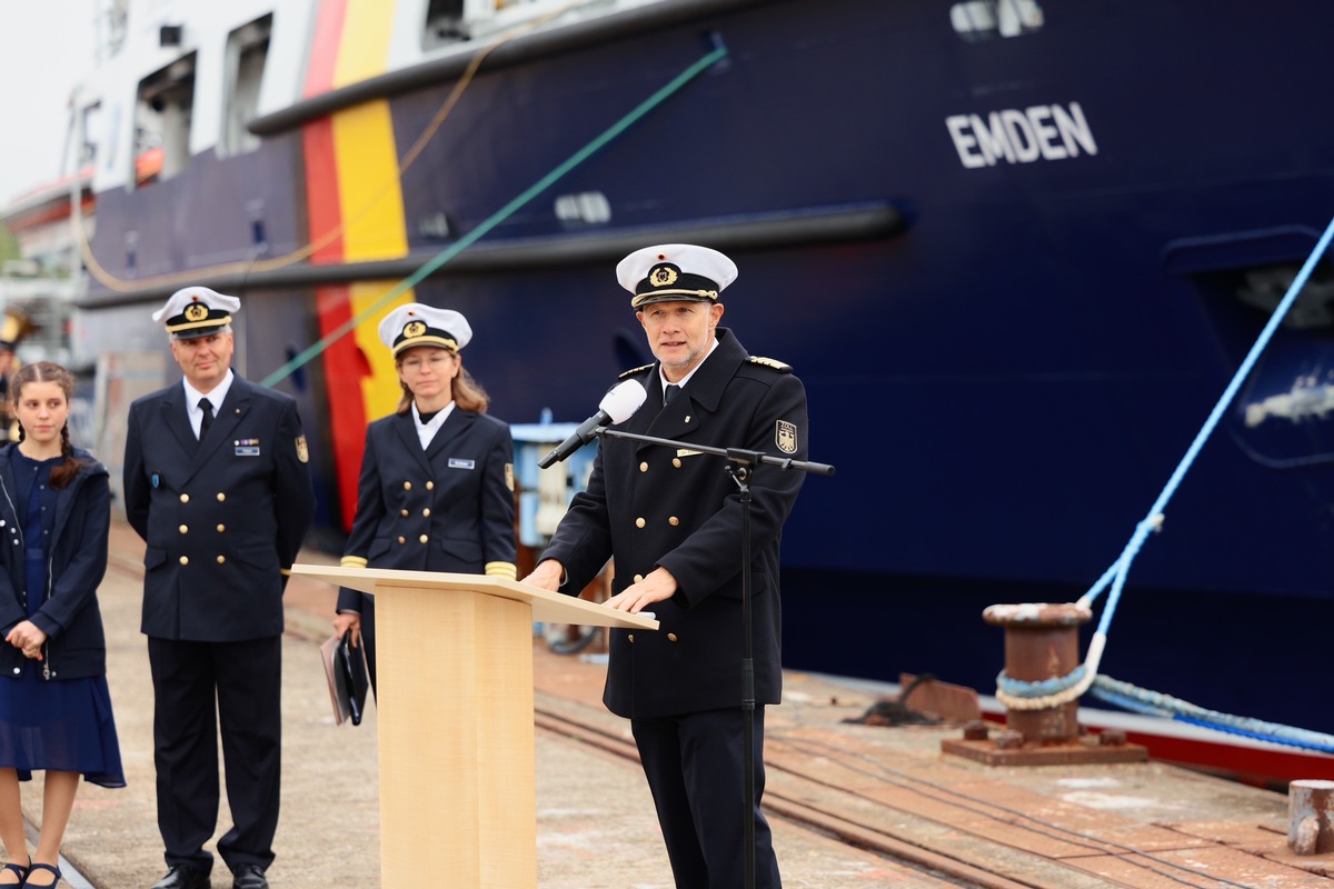 Der Präsident der Generalzolldirektion, Dr. Armin Rolfink hob hervor: "Die Indienststellung der "Emden" ist ein weiterer bedeutender Schritt zur Stärkung unserer maritimen Flotte. Dieses Schiff verbindet modernste Technik mit nachhaltigen Standards und bietet damit alle Voraussetzungen um unsere vielfältigen Aufgaben auf See auch in Zukunft effizient und zuverlässig erfüllen zu können."