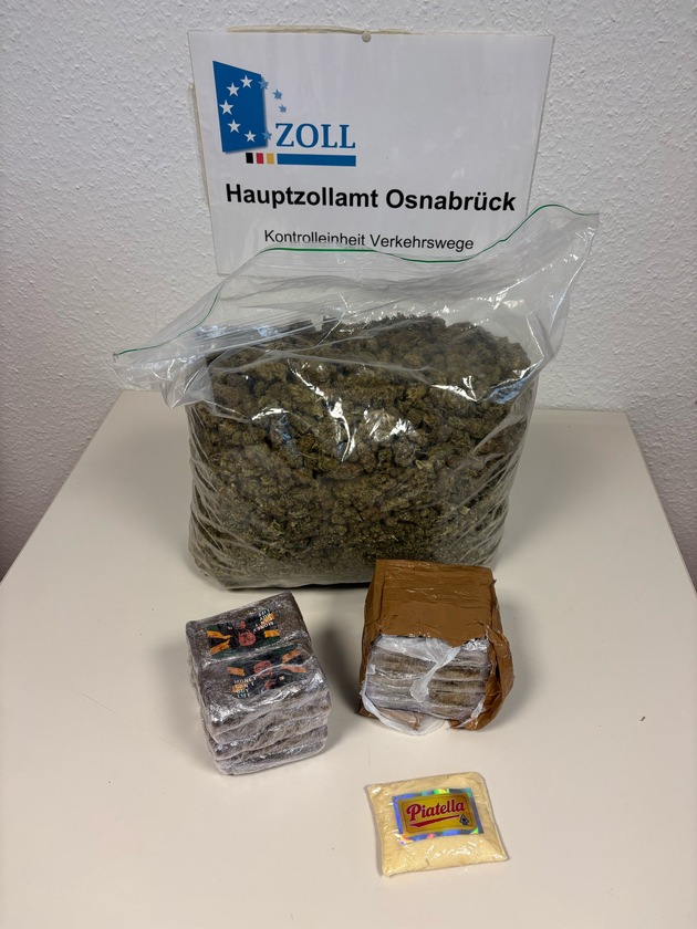 Osnabrücker Zöllner stellten am Nachmittag des 24. Februar 2026 bei einer Fahrzeugkontrolle 2 Kilogramm Marihuana und 2 Kilogramm Haschisch im Wert von rund 36.000 Euro sicher.