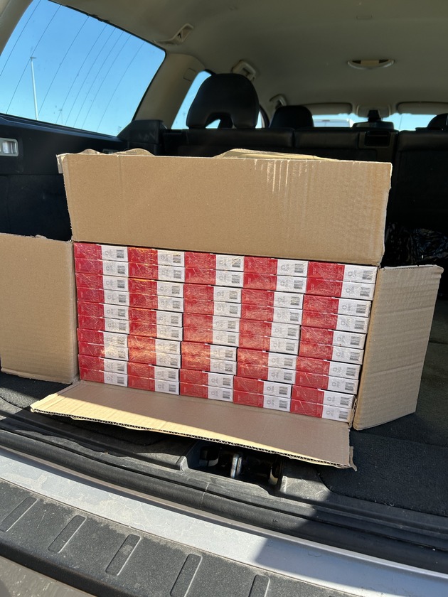 Fast 50.000 Zigaretten stellte der Stralsunder Zoll innerhalb weniger Tage bei diversen Kontrollen sicher. Zwei Kontrollergebnisse stachen aufgrund der Einzelmengen dabei besonders hervor: Am 03.10.2025 wurde ein polnischer PKW mit drei Insassen bei der Einreise nach Deutschland auf dem Weg zur Arbeit in die Niederlande am Grenzübergang Pomellen für eine Kontrolle ausgewählt. Auf Befragen nach verbrauchsteuerpflichtigen Waren, zeigten die Beteiligten lediglich Zigaretten im Rahmen der Richtmengen an. Nach Entladen des gesamten Reisegepäcks und entsprechender Zuordnung zu den drei Insassen blieb im Kofferraum des Fahrzeugs ein Karton übrig, welcher selbstverständlich von den Beamten geöffnet und kontrolliert wurde. Zum Vorschein kamen 10.000 Zigaretten ohne gültiges Steuerzeichen. Mit den Tatsachen konfrontiert, bekannte sich der 53jährige Fahrer des PKW zu den Zigaretten und äußerte, dass diese für den Verkauf in den Niederlanden vorgesehen waren.