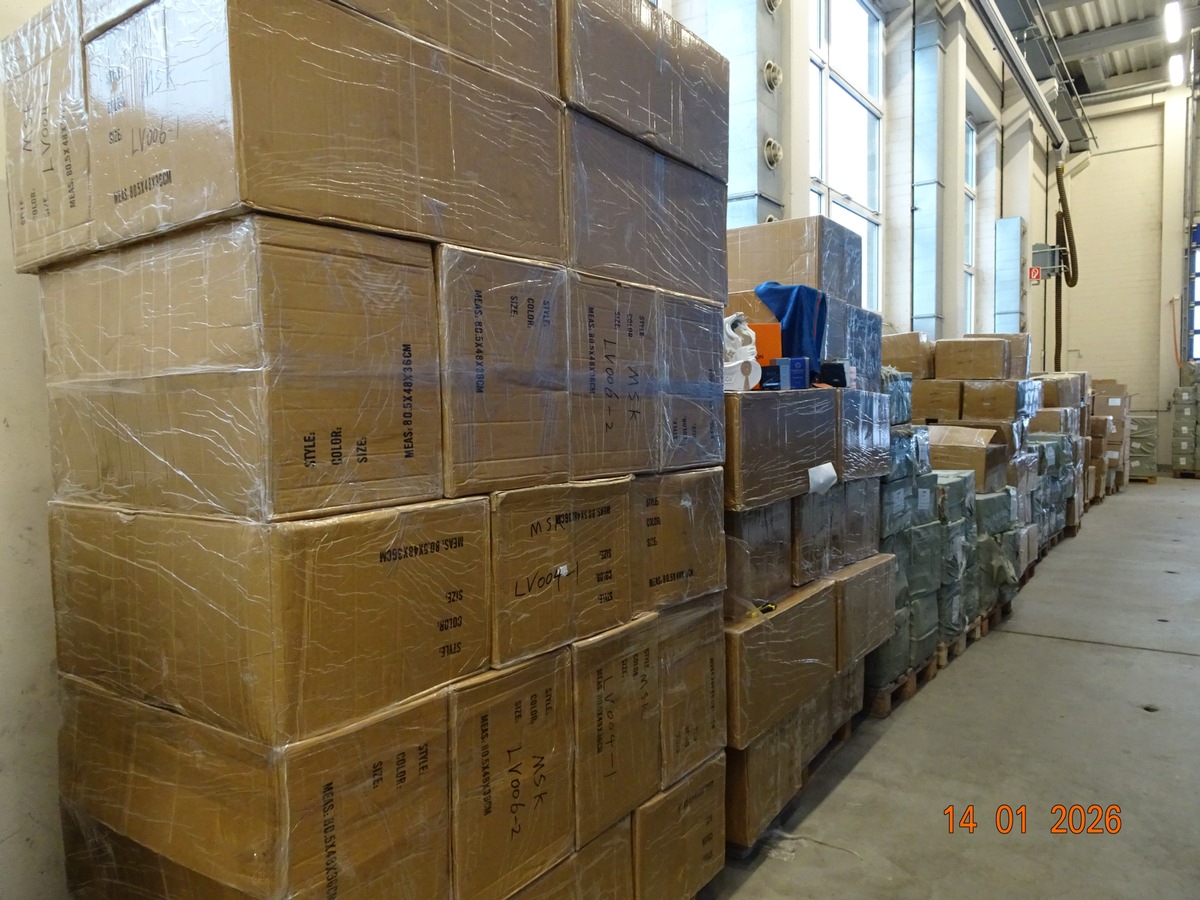 Bereits am 02.09.2025 wurde ein aus China kommender Container von den Beamten etwas genauer unter die Lupe genommen. Nach Öffnung des Containers wehte den Zöllnerinnen und Zöllnern ein betörender Duft entgegen und schnell wurde klar, dass sich im Container wesentlich mehr Waren befanden, als eigentlich angemeldet, darunter auch ein erheblicher Teil markenrechtsverletzender Waren.