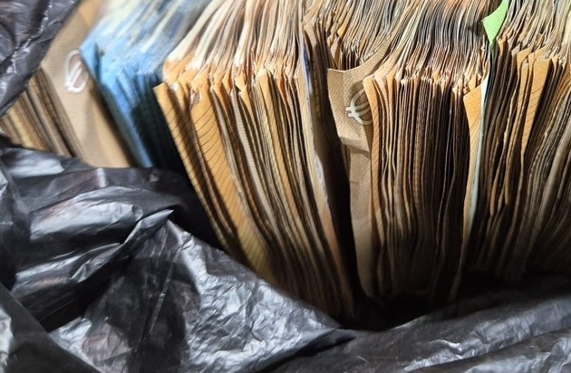 Während der Kontrolle entdeckten die Beschäftigten des Hauptzollamts Aachen mehrere Bündel Bargeld im Fahrzeug. Ein Teil des Geldes befand sich in einer Plastiktüte, die unter dem Fahrersitz versteckt war. Ein weiteres Bündel Geldscheine fanden die Beamtinnen und Beamten in der rückwärtigen Tasche des Fahrersitzes.