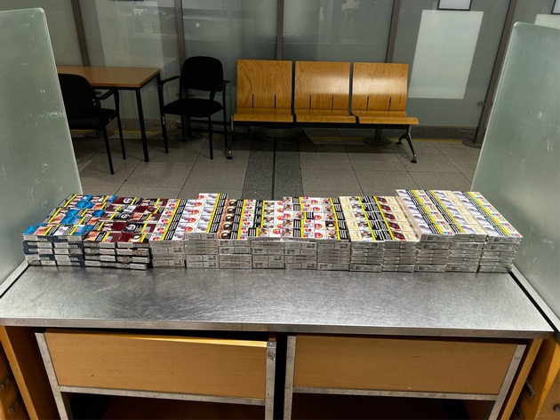 Der jüngere der beiden Reisenden (24) passierte fünf Minuten später den grünen Ausgang und wurde ebenfalls zum Kontrolltisch gebeten. In seinem Gepäck fanden die Zöllner insgesamt 3.200 Stück Zigaretten unterschiedlicher Marken mit bulgarischen Steuerbanderolen. Auch diese Zigaretten waren teilweise mit Kleidung umwickelt.
