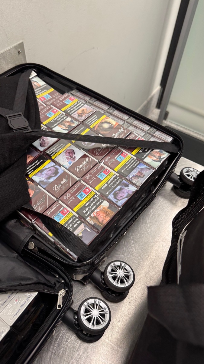 "Bereits auf dem Röntgenbild des mitgeführten Gepäcks, waren zahlreiche Zigaretten klar zu erkennen. Insgesamt 32 Stangen hatte der Mann in den Reisetaschen der Familie versteckt. Noch vor Ort wurde gegen ihn ein Strafverfahren eingeleitet und die geschmuggelten Zigaretten sichergestellt", schildert Jens Ahland den Fall.