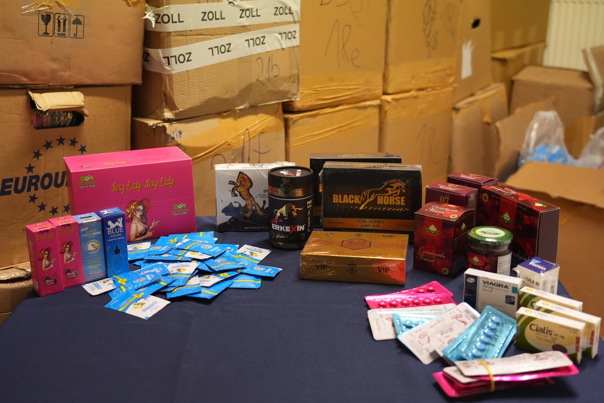 Der Ford Transit mit schwedischer Zulassung wurde auf Höhe Geiselwind von einer Streife des Zolls angehalten. Auf der Ladefläche stießen die Einsatzkräfte auf insgesamt 30 Kisten mit unterschiedlichsten Erzeugnissen, darunter Viagra-Tabletten, große Mengen an sogenanntem "Vital Honey", luststeigender Schokolade und Marmelade sowie sogenannten "Delay-Tüchern". Eine zwischenzeitliche Auswertung der Ladung ergab insgesamt mehr als 50.000 Einzelprodukte, von denen kein einziges für den deutschen Markt zugelassen war. Neben den potenz- und luststeigernden Mitteln stellten die Einsatzkräfte zudem unverzollten Goldschmuck im Wert von mehr als 1.000 Euro sowie sieben unversteuerte Stangen Zigaretten sicher.